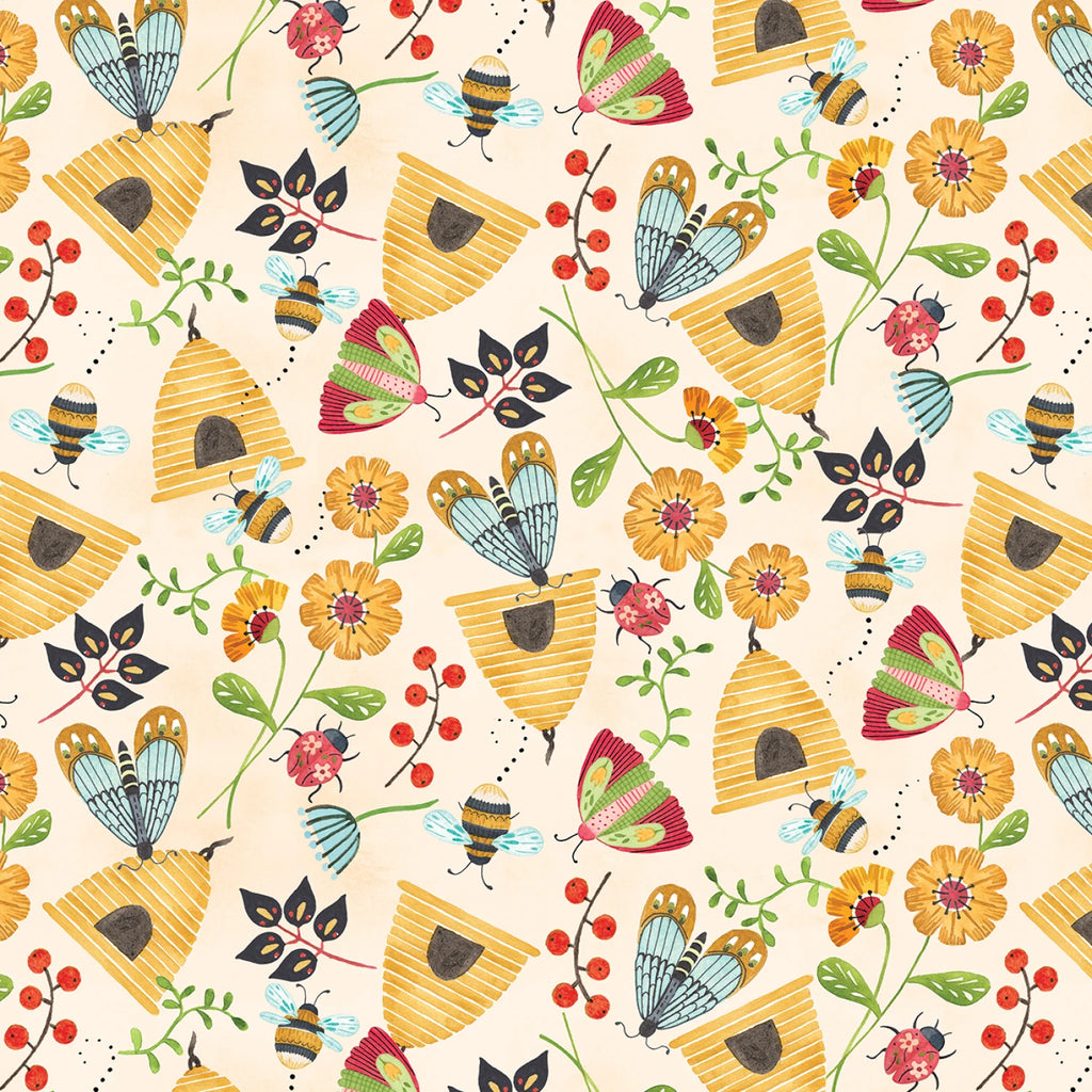 Nature's Symphony - Beehives and Flowers - Pale Yellow
