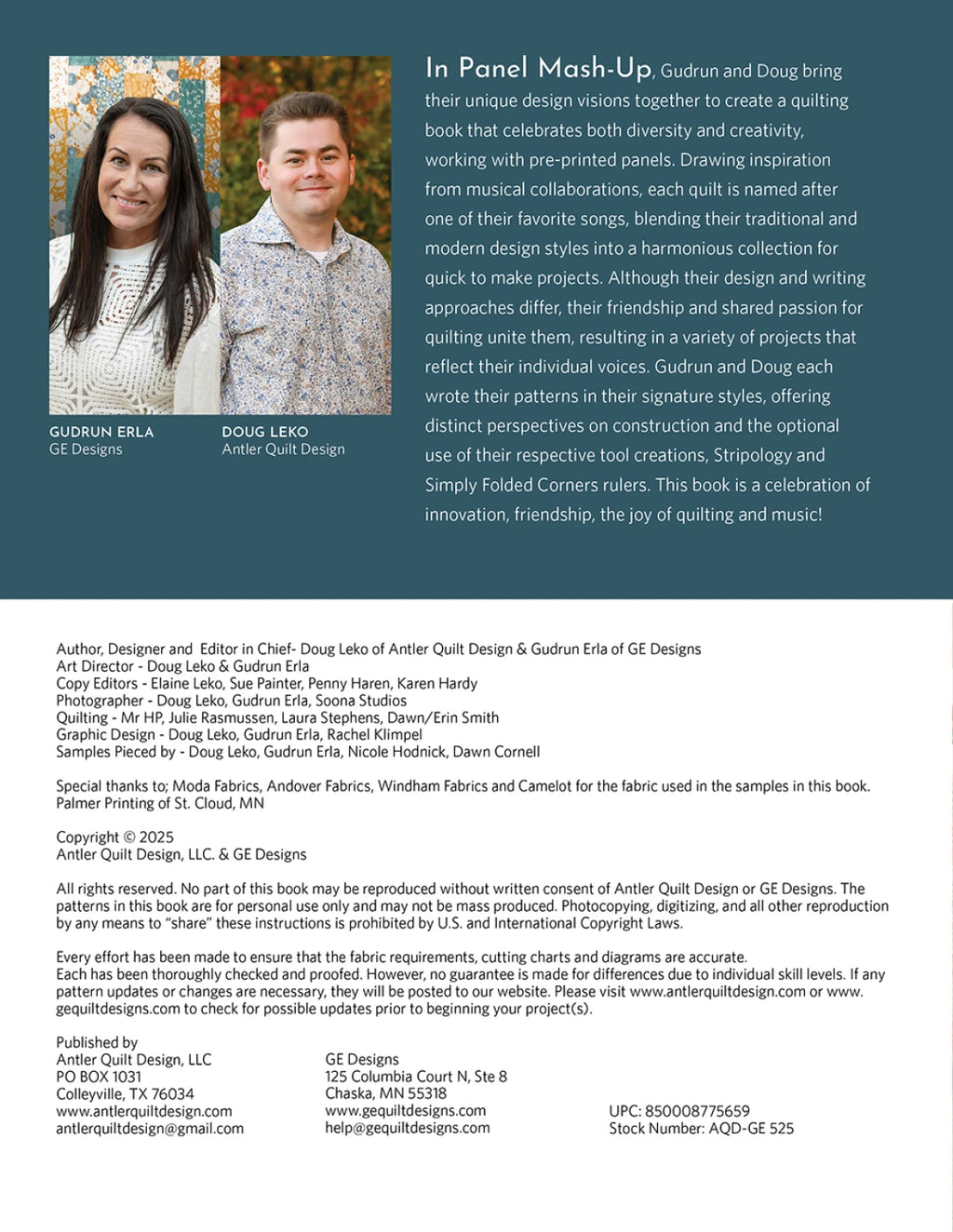 Panel Mash-Up is a brand-new book packed with creative ways to turn fabric panels into dynamic quilts. Co-authored by quilting besties; Gudrun Erla of GE Designs and Doug Leko of Antler Quilt Design, this book features quilt patterns that are fresh, fun, and easy to personalize.