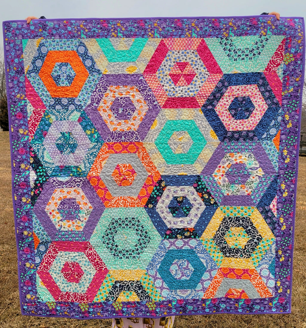 Do you have a Jelly Roll and aren’t sure what to make with it? Add a border fabric and make a beautiful quilt measuring 51” by 53”. It looks complicated but is really very easy. No set in seams!