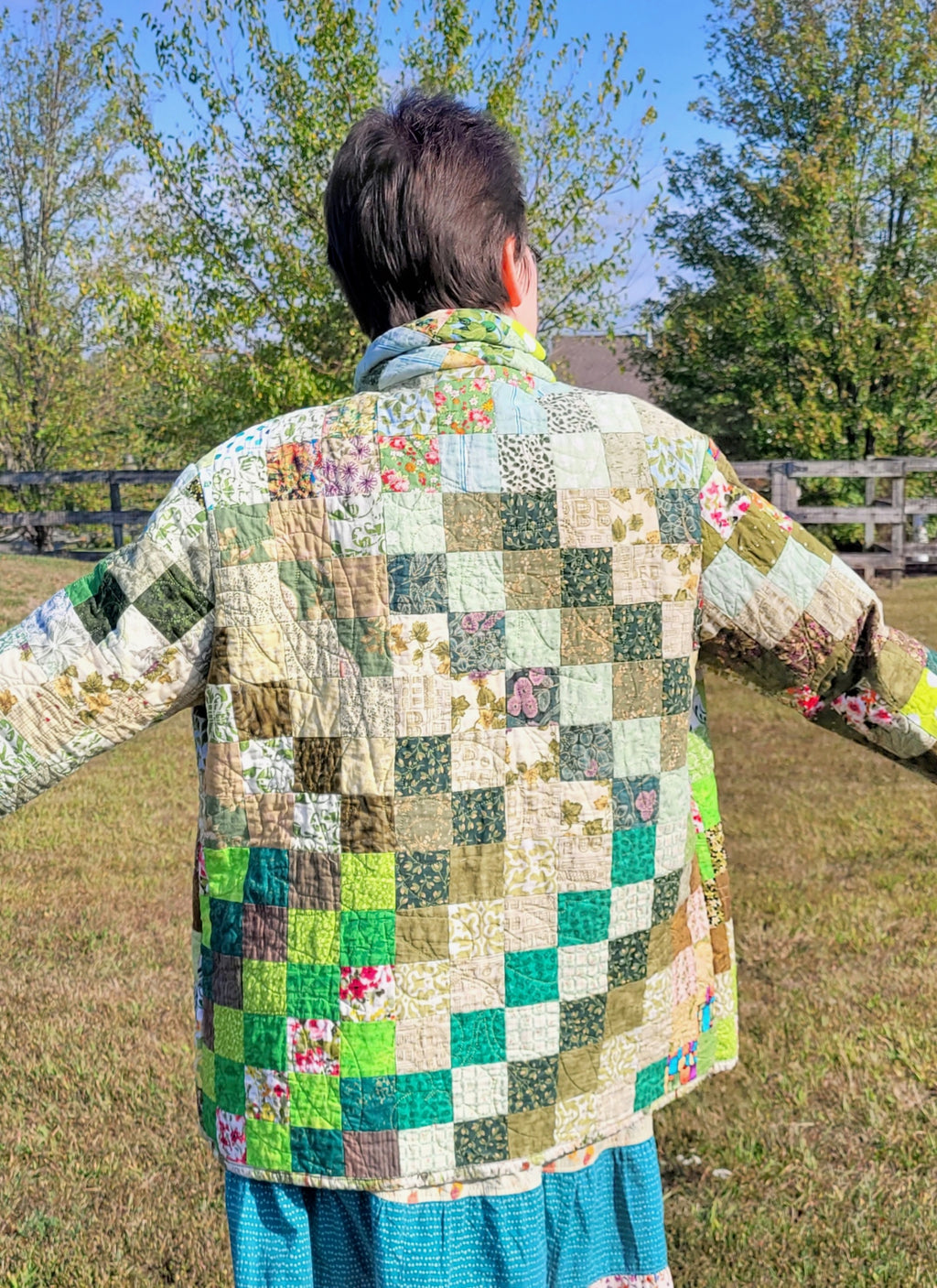 In this class we will use an existing completed quilt to create a simple jacket. The quilt needs to be at least 60” x 90”. This is a perfect project to maybe cut up a quilt that has laid around for years with no purpose. Maybe it's a quilt that is outdated? Why not give it a new life? You could also buy a ready made quilt. I used a Kantha quilt and it turned out great. You will be amazed at how easy it is to sew up a coat.