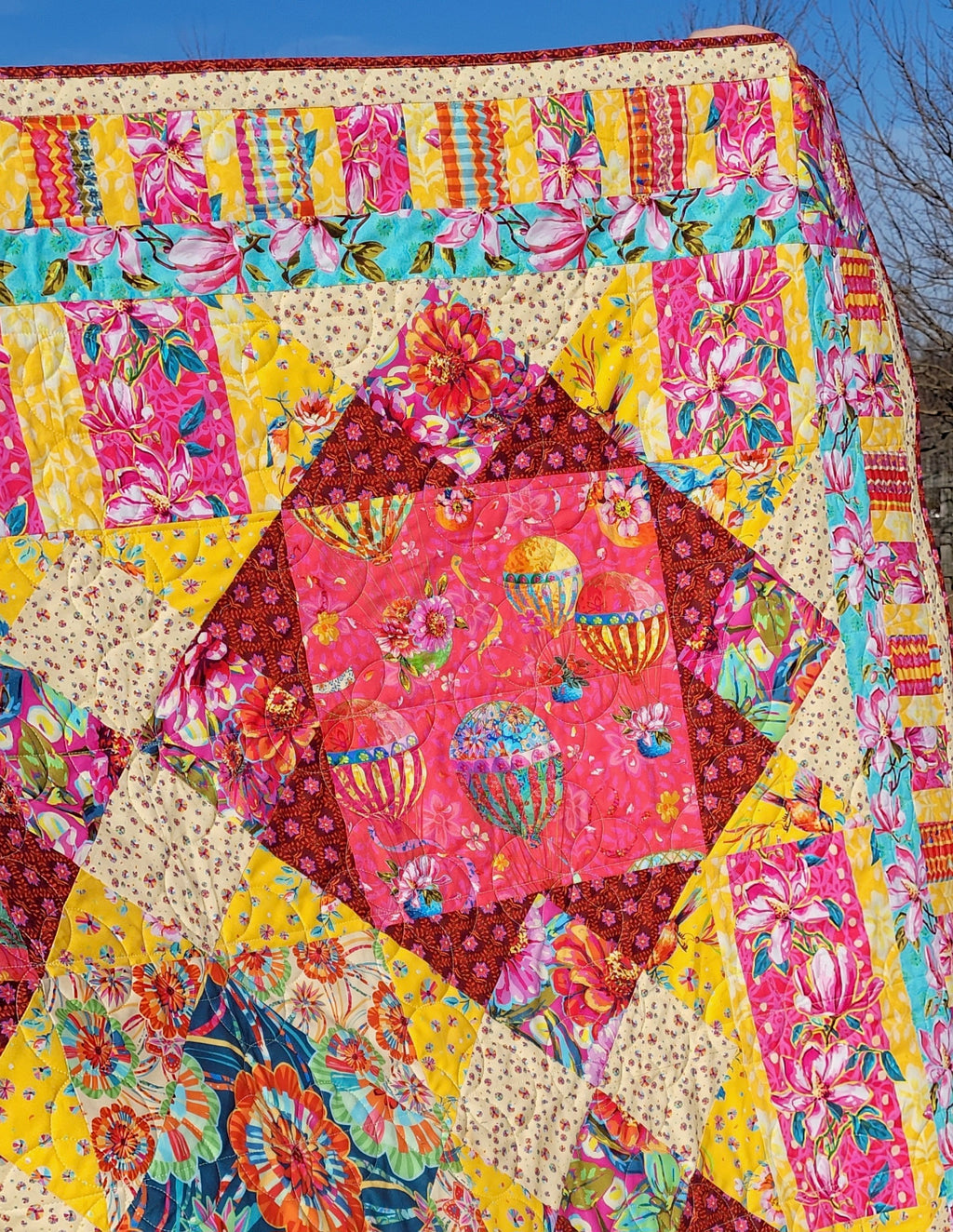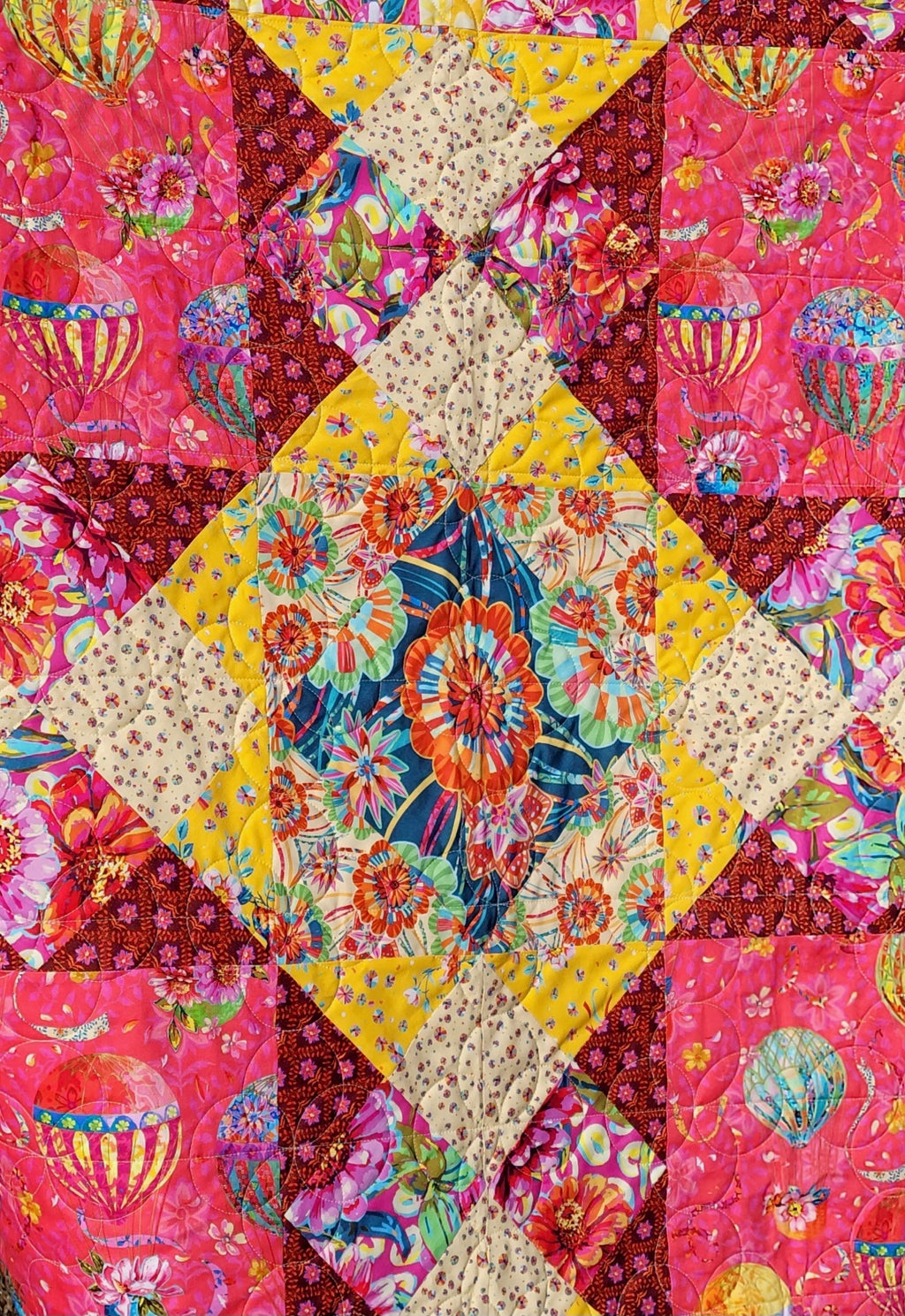 Kit includes pattern and all fabric for the top and binding. Featured fabric is Festival designed by Odile Bailloeil for FreeSpirit.