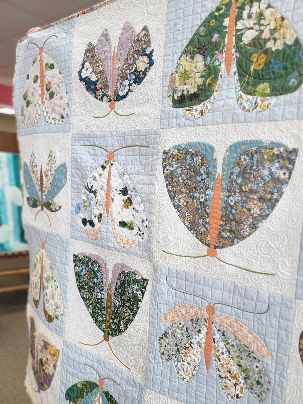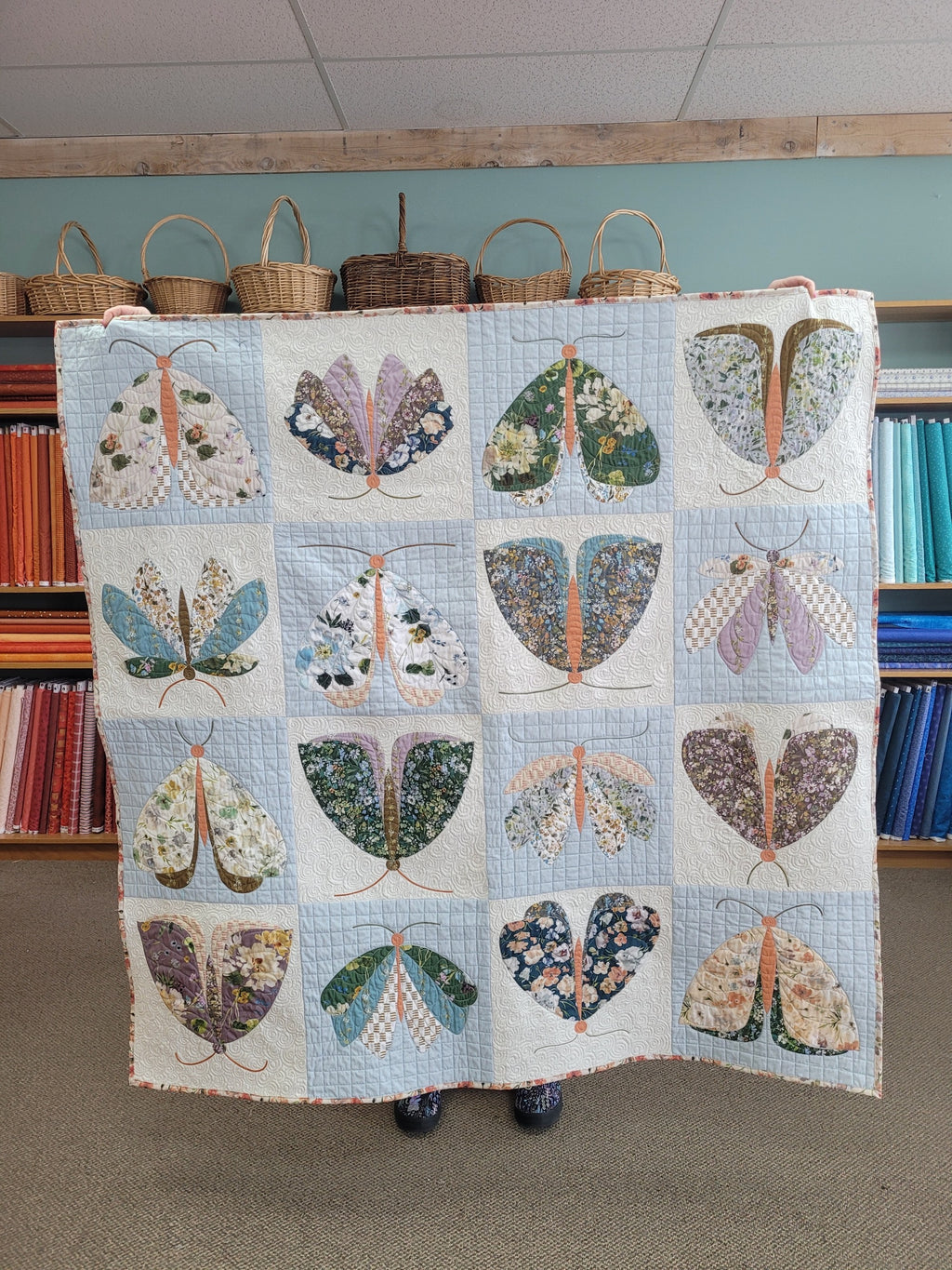Kit includes pattern and all fabric for the top and binding. Techniques include raw edge machine applique and traditional piecing.