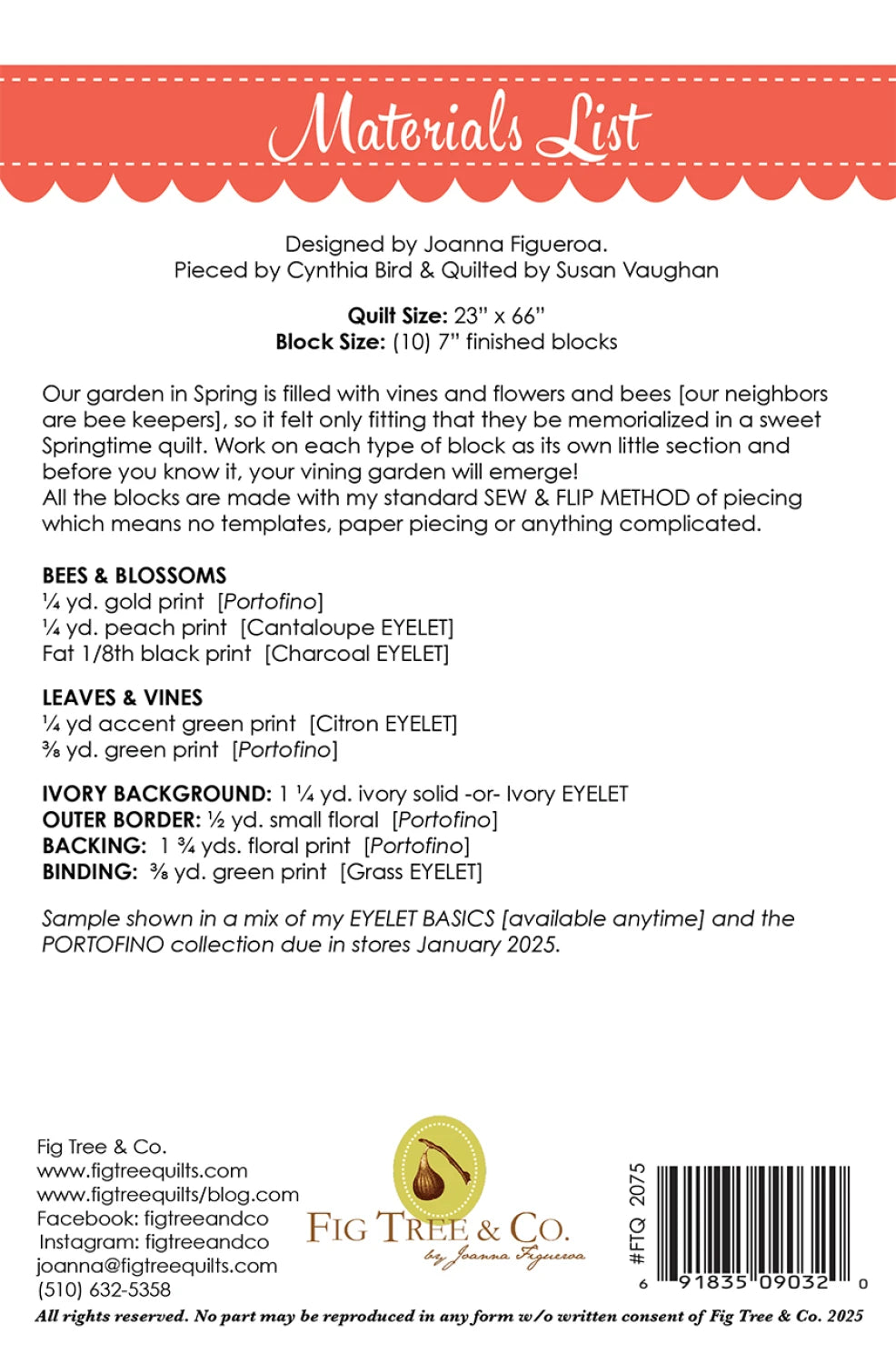 Our garden in Spring is filled with vines and flowers and bees (our neighbors are bee keepers), so it felt only fitting that they be memorialized in a sweet Springtime quilt. Work on each type of block as its own little section and before you know it your vintage garden will emerge! All the blocks are made with my standard SEW & FLIP METHOD of piecing which means no templates, paper piecing or anything complicated. Size: 23" x 66"