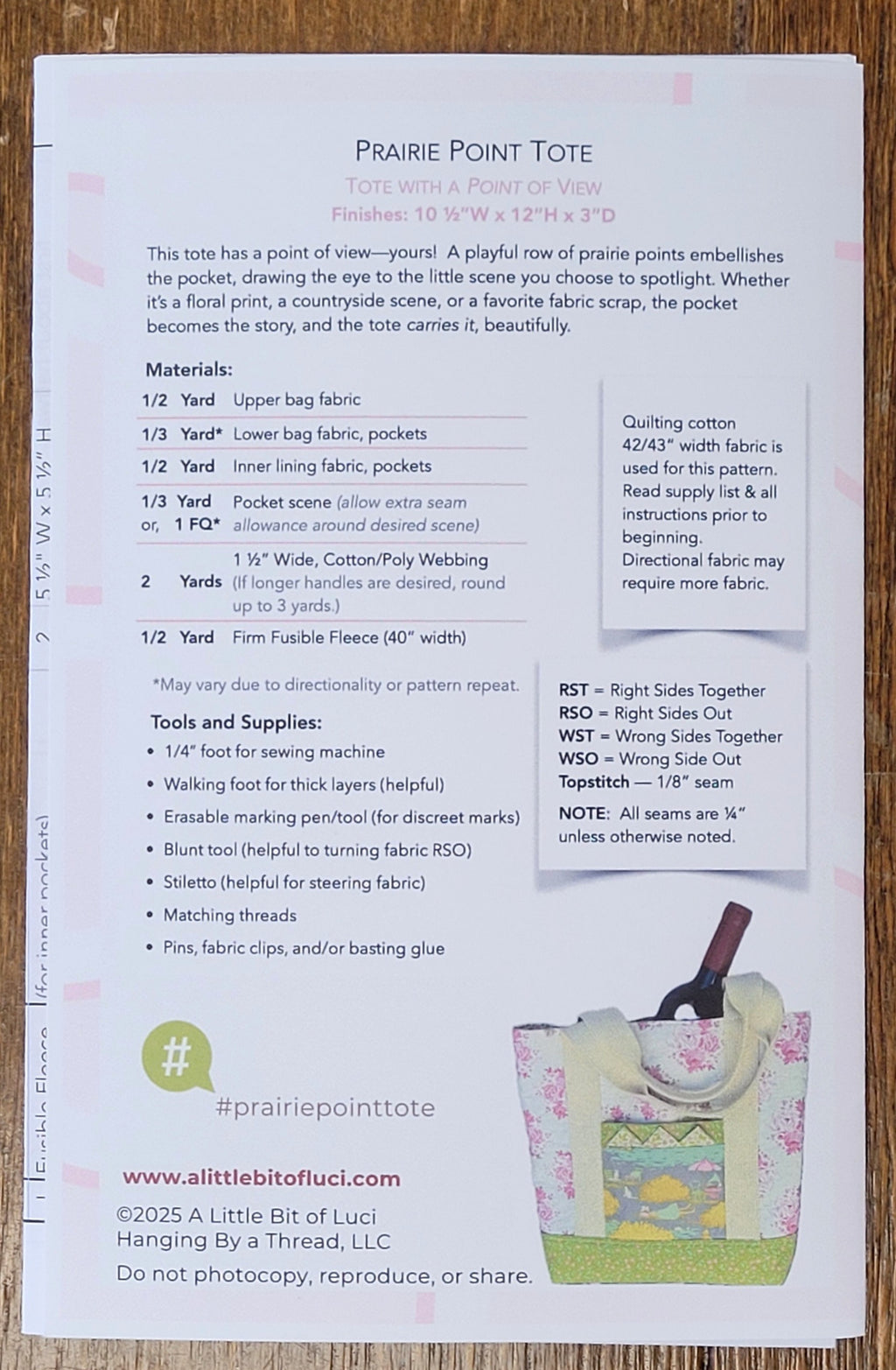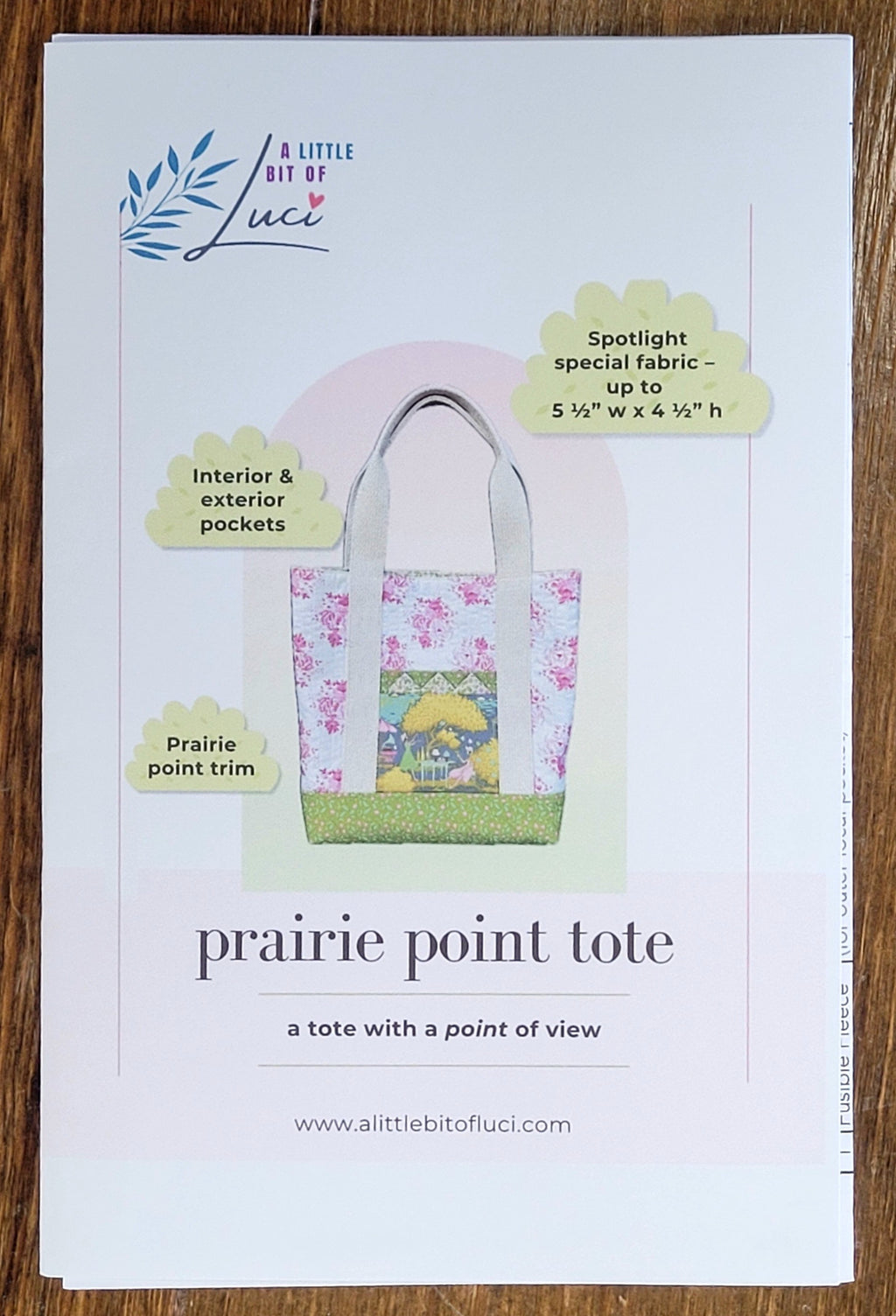This tote pattern showcases a focus fabric accented by fun prairie points. Anther adorable winner from A Little Bit of Luci.