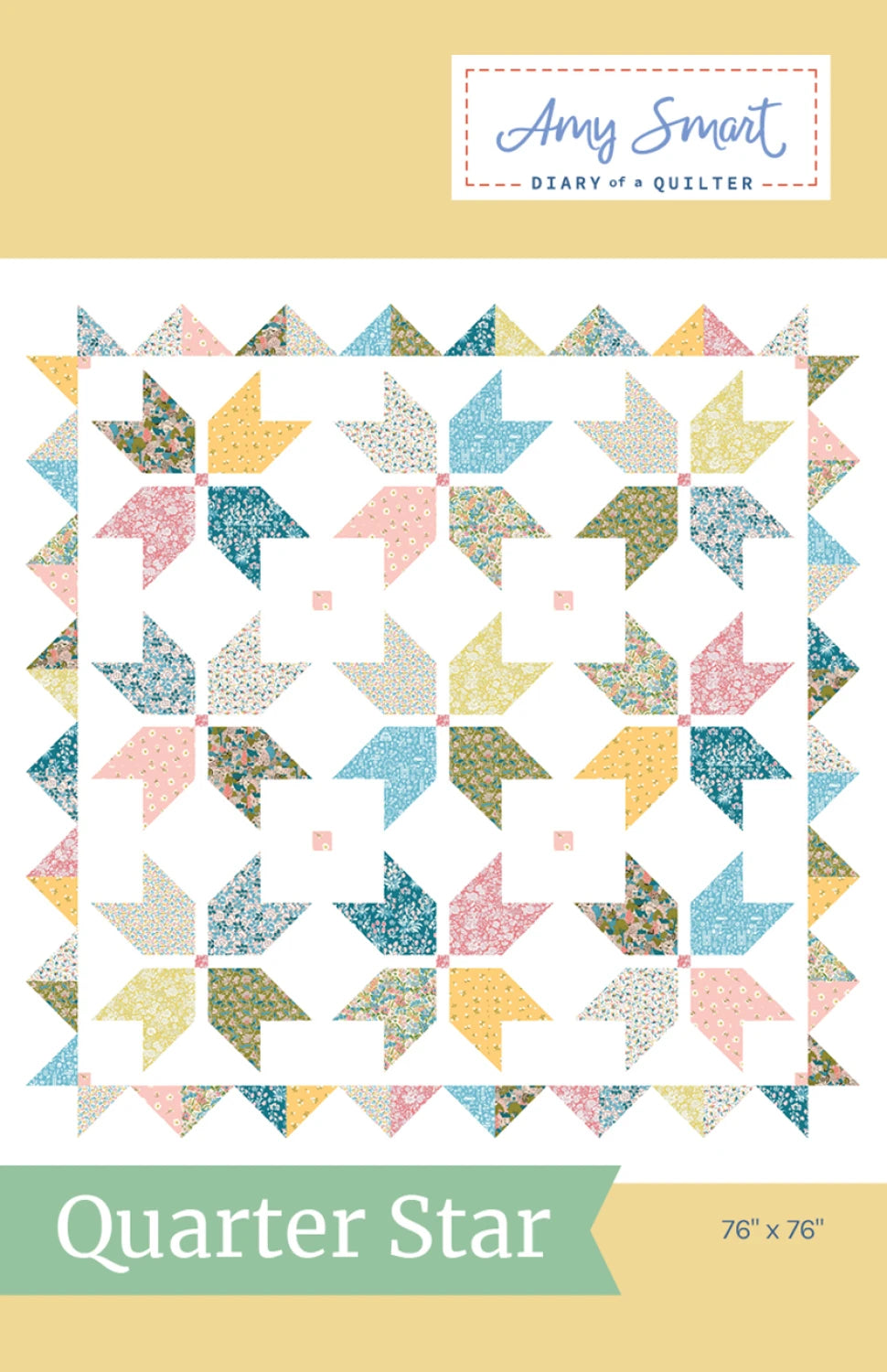 Amy Smart/Diary of a Quilter. Fat Quarter-friendly traditional start quilt. Finishes at 72" x 72".
