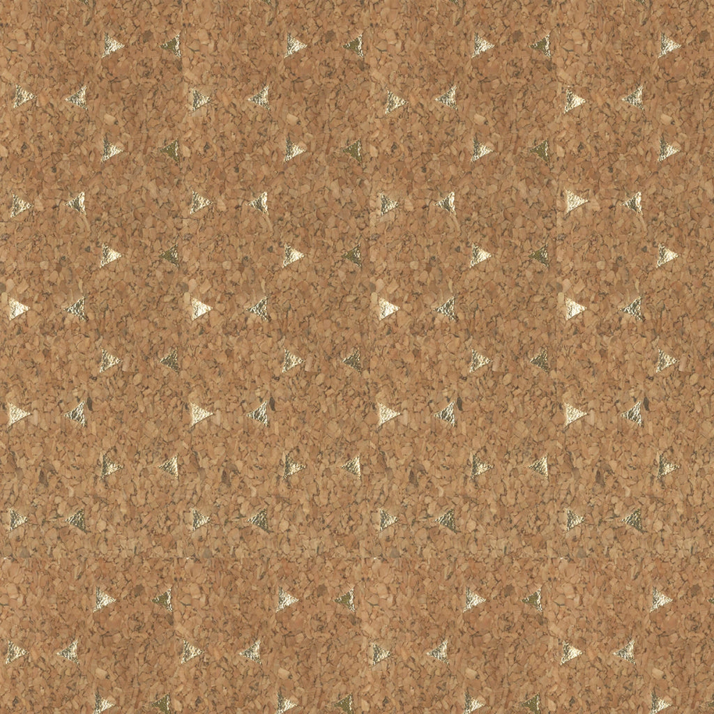 This unique fabric features a natural cork face with a subtle, elegant design of gold metallic triangles arranged in a staggered pattern, creating a visually appealing texture that adds a touch of sophistication. The gold triangles provide a striking contrast against the organic cork background, making it suitable for both modern and traditional applications in fashion, upholstery, or craft projects.